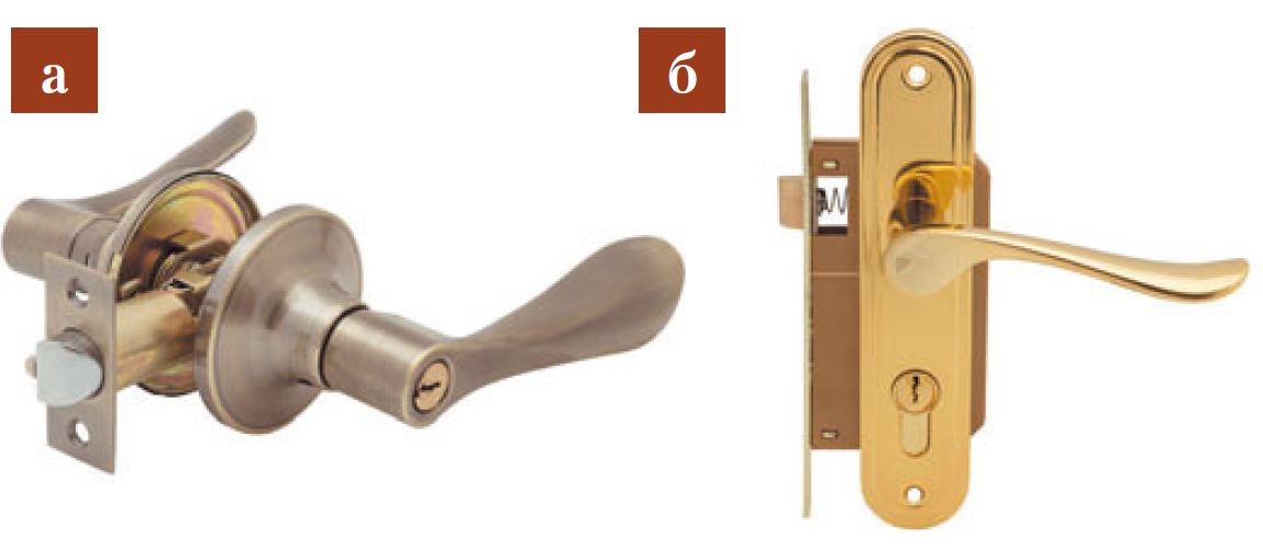 - Замок с запирающим устройством (рис. б) — для входных дверей и помещений с ограниченным доступом (топочная, кладовая).