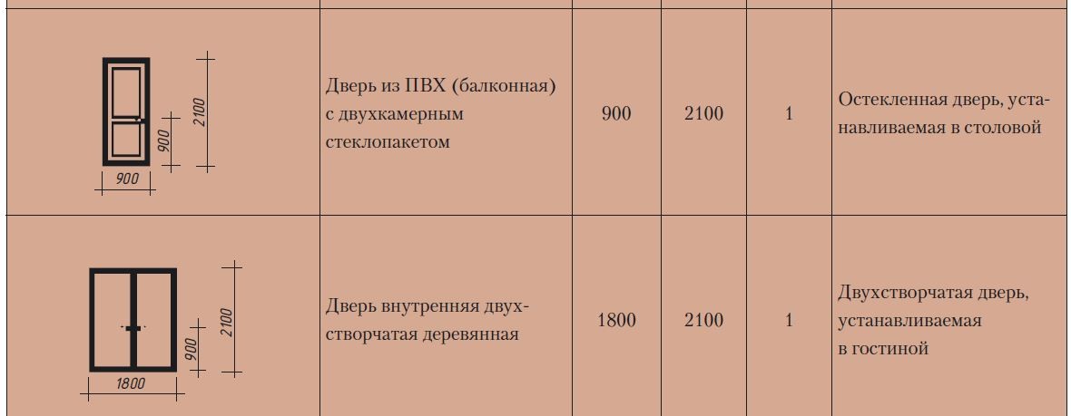 В таблице ниже приведены основные типоразмеры дверей для частного дома.