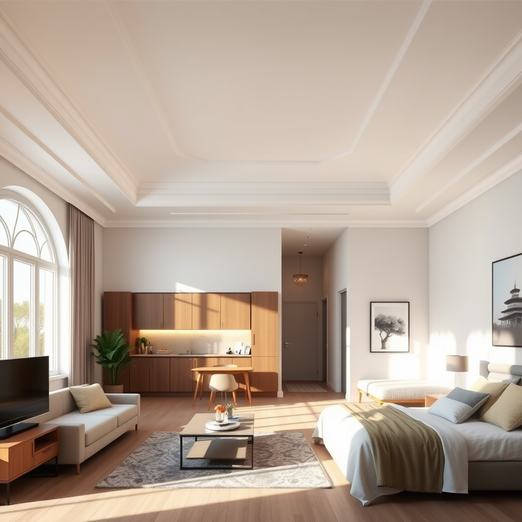 Высокие потолки (более 3 метров) добавляют помещению объем и элегантность, но могут создать ощущение “пустоты” или холодности. Чтобы избежать этого, применяйте вертикальные акценты, например, высокие шторы или декоративные панели.