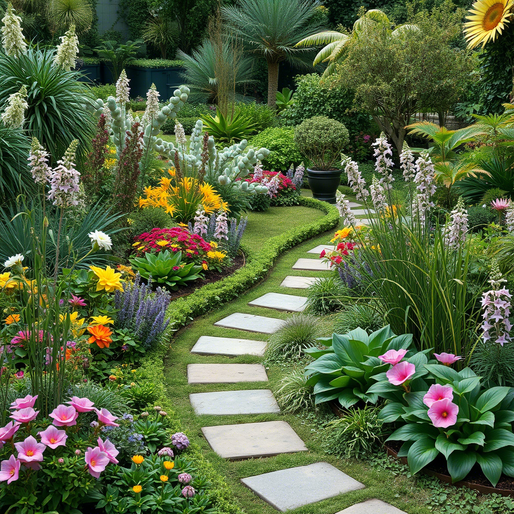 Подбор растений — ключевой этап в создании садовой композиции. Учитывайте климатические условия вашего региона, освещённость участка и тип почвы. Например, тенелюбивые растения (хосты, папоротники) лучше размещать в затенённых местах, а светолюбивые (розы, лаванда) — на открытых участках.