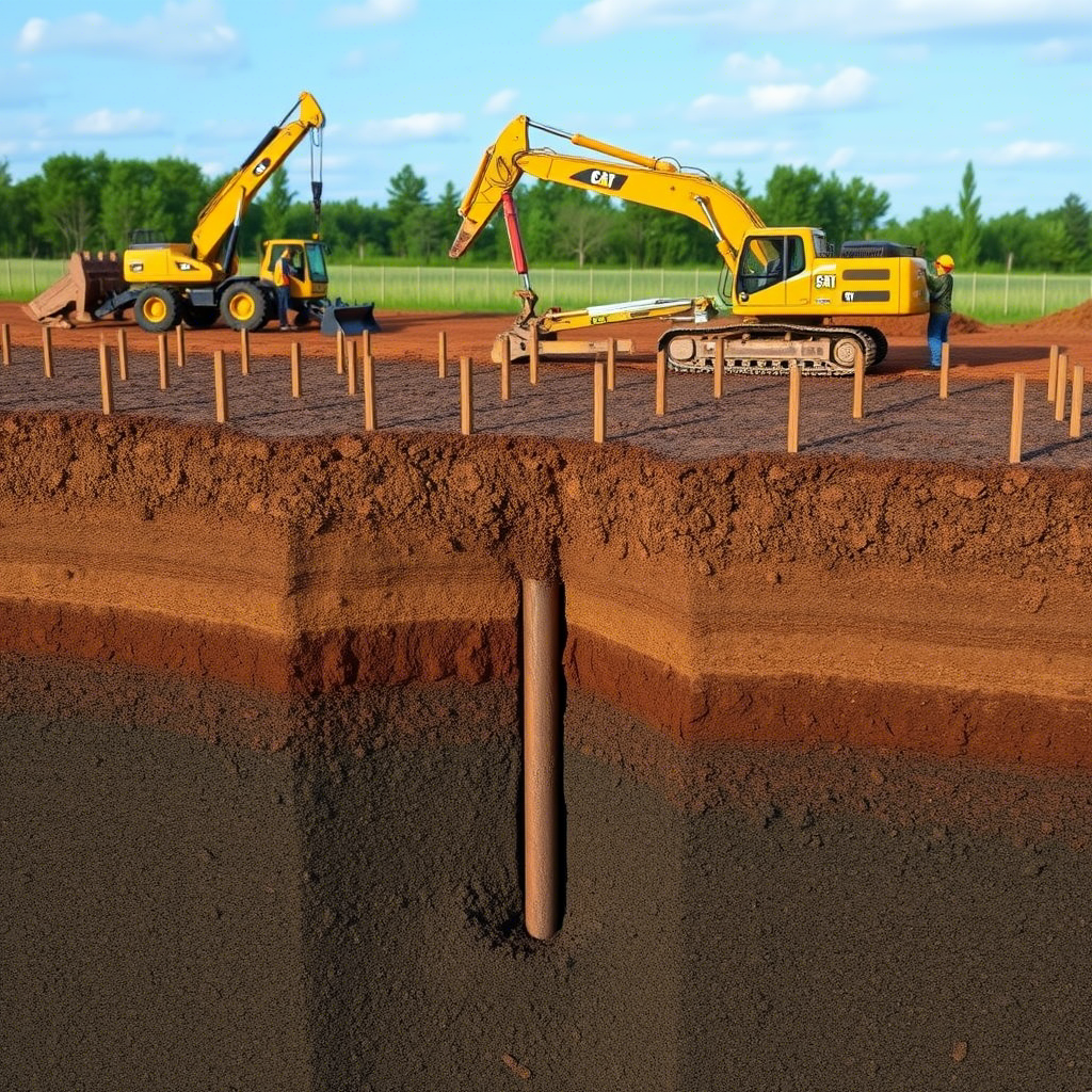 Это наиболее распространенный вариант для торфяников. Сваи проходят через неустойчивый торфяной слой и опираются на более плотные грунты, расположенные ниже. В зависимости от условий могут использоваться:- буронабивные сваи : формируются непосредственно на участке путем бурения скважин и заливки бетона;