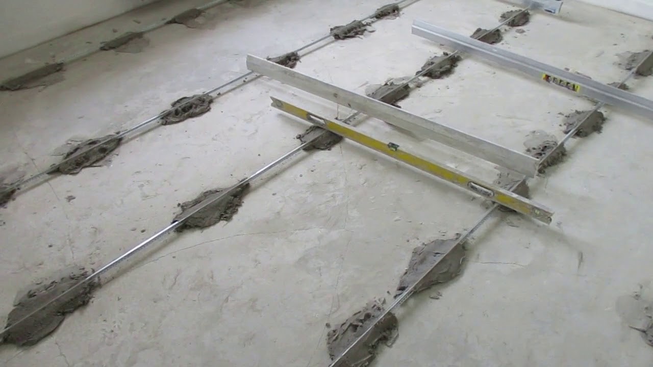- Устанавливайте маяки на тот же цементно-песчаный раствор, из которого будет залита стяжка.