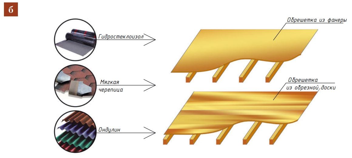 - б — для сплошной обрешётки.