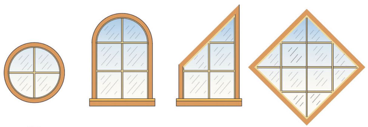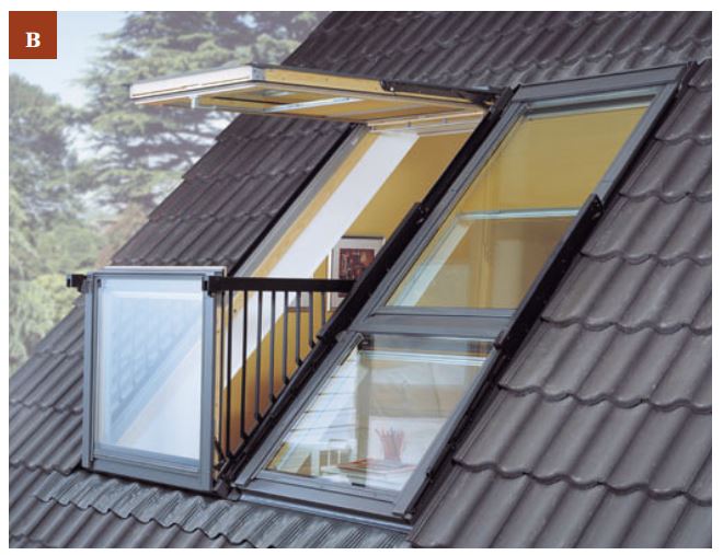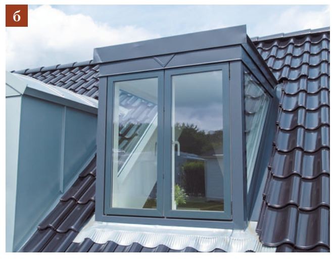 Требуют устройства дополнительных врезок в конструкцию крыши (люкарен). Позволяют использовать оконные блоки различных форм.