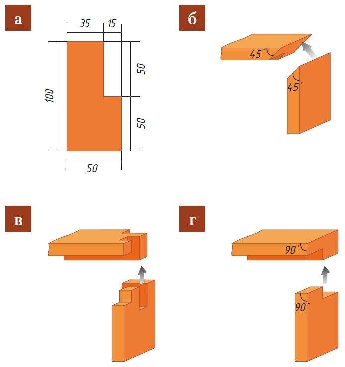 - б — соединение углов под 45°;