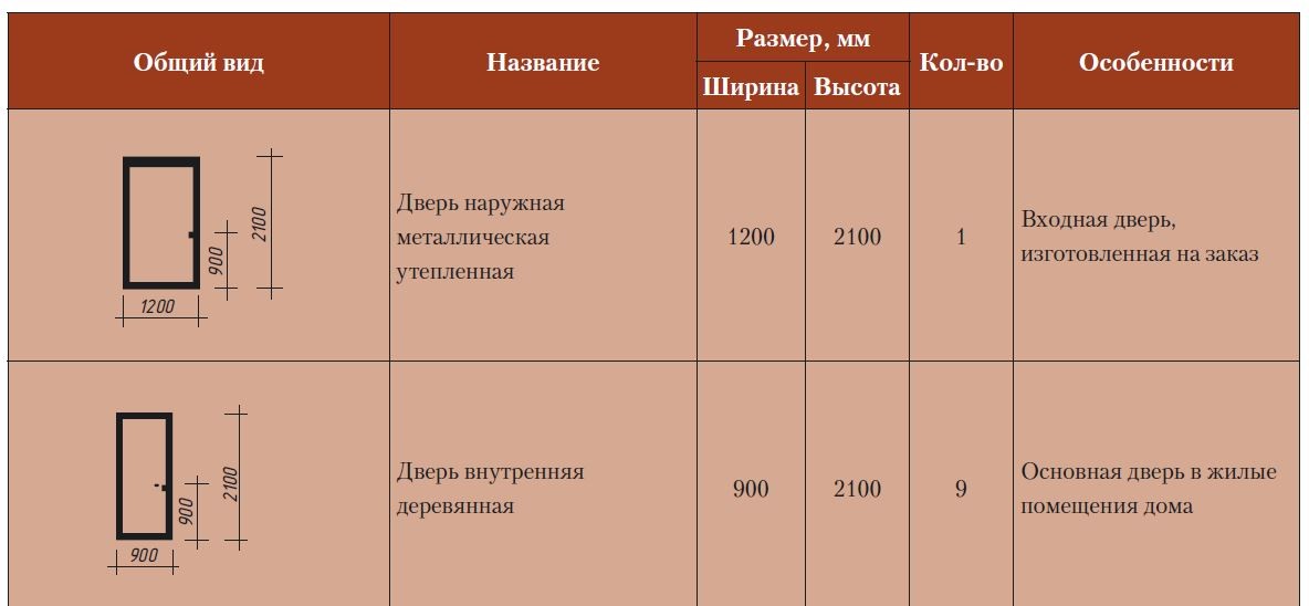 В таблице ниже приведены основные типоразмеры дверей для частного дома.