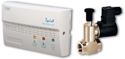 Природный газ — горючее вещество, и его утечка представляет серьёзную опасность. В помещениях с газовым оборудованием нормативы предписывают устанавливать систему контроля загазованности — газоанализатор (сигнализатор) в паре с электромагнитным клапаном-отсекателем.