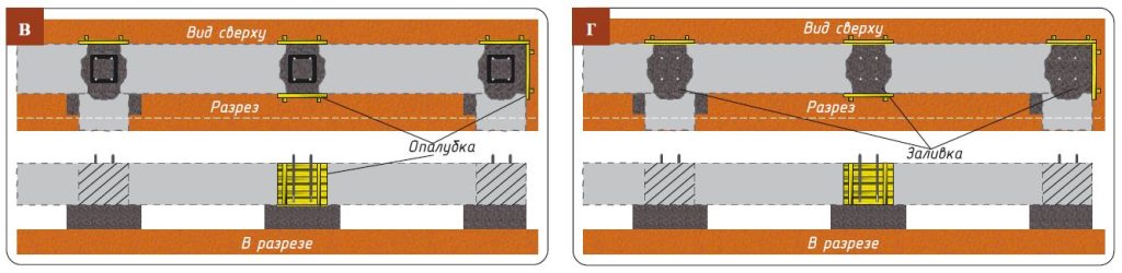 - г — заливка бетонной смеси;