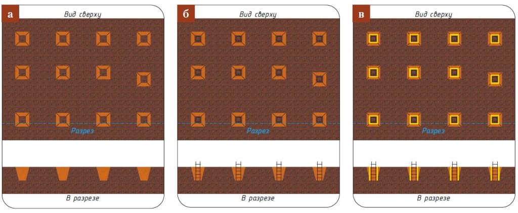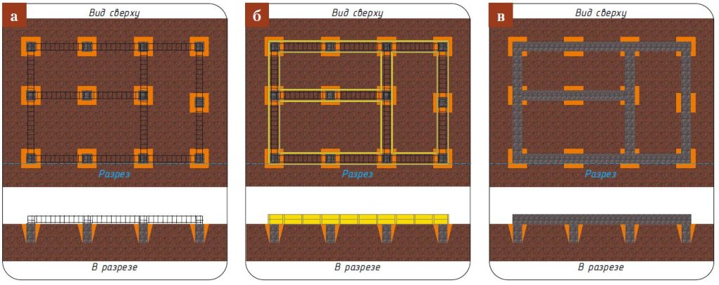 Разновидности ростверков по заглублению: