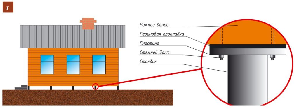 Важно: оставлять столбчатый фундамент без нагрузки на зиму нежелательно, особенно на пучинистых грунтах. Если возведение стен откладывается, необходимо установить нижний венец или обвязку, жёстко связав все столбы.
