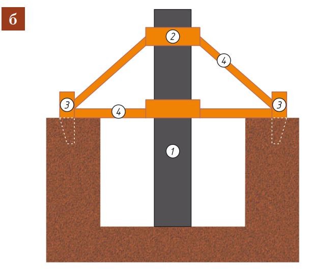 - а — подошва пирамидальной формы (основание 75×75 см, верх ≥ 35×35 см);