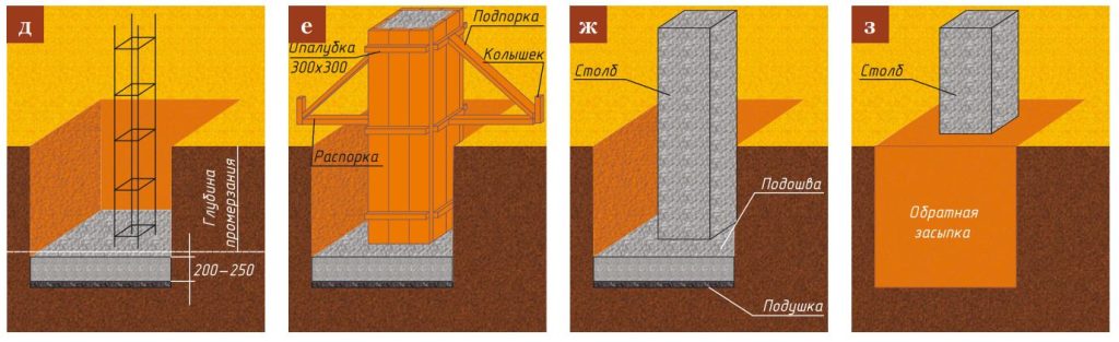 Этапы устройства столбчатого фундамента