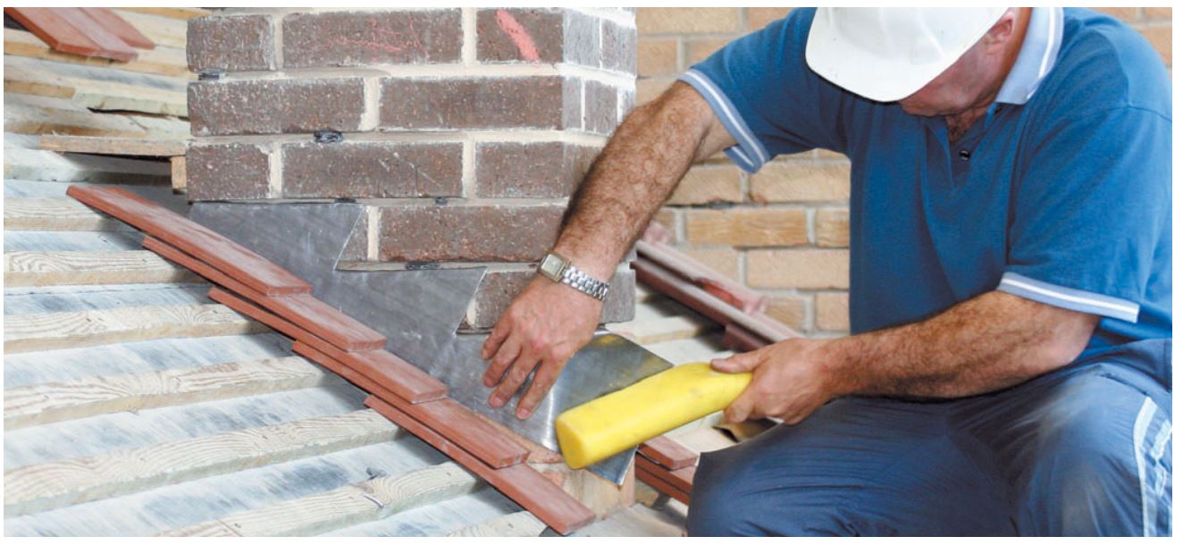 В местах прохода дымовых и вентиляционных труб устраивают водоотвод в виде треугольной разделки с коньком, параллельным направлению стока воды. Дымовые трубы оснащают утолщением в четверть кирпича на высоте 100–300 мм от плоскости крыши. Над вентиляционными стояками устанавливают двускатные металлические зонты.