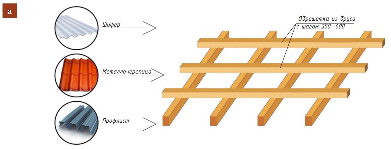 - б — для сплошной обрешётки.